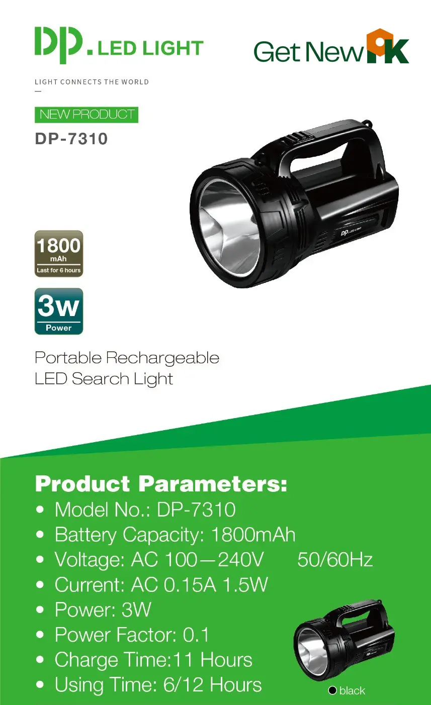 DP 7310 Rechargeable LED Torch – High-Intensity Handheld Search Light for Outdoor Adventures and Emergency Use & Price